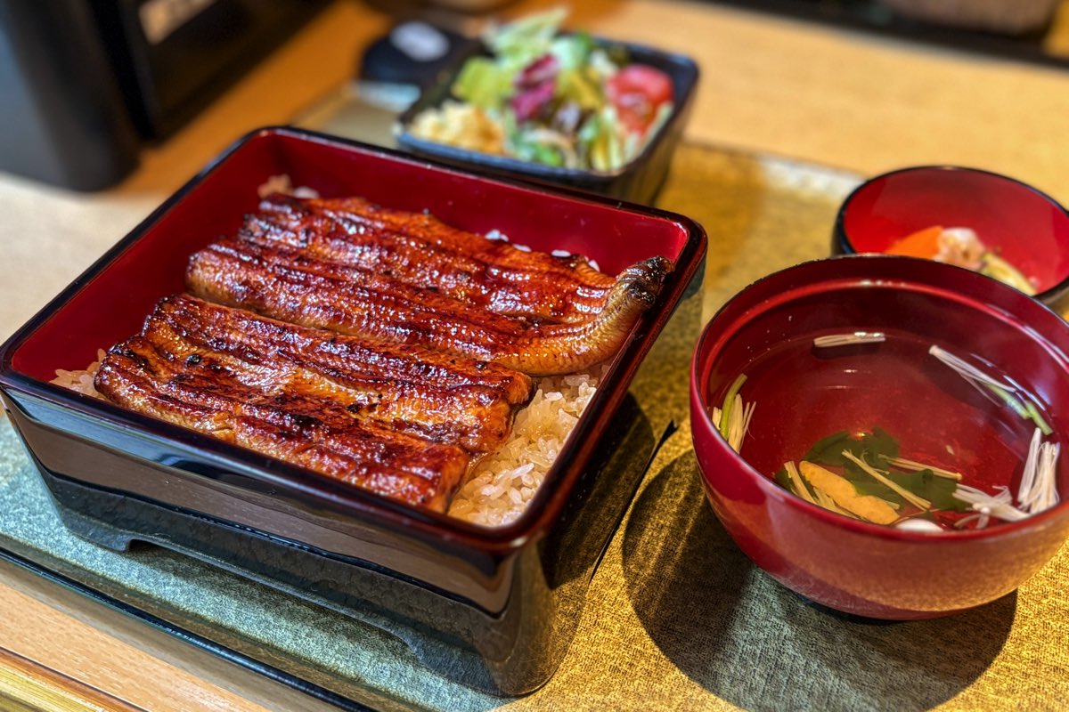 炭火で焦げ目をしっかりつけて焼き上げ、パリッと香ばしいうなぎに、重くなりすぎないようあっさりと仕上げた甘さ控えめのタレが冴える。