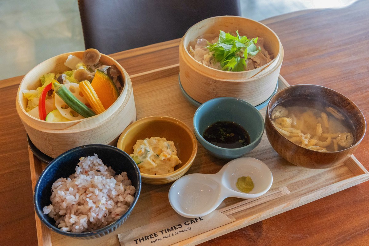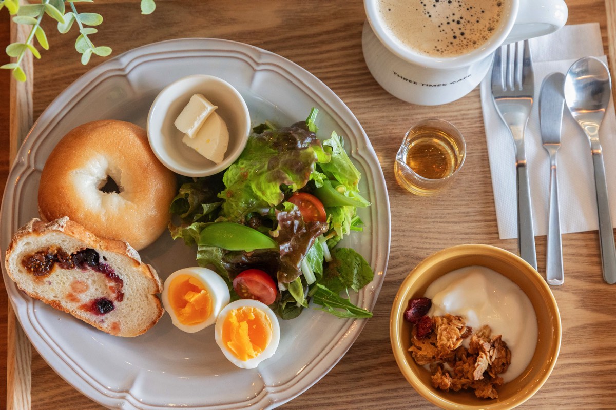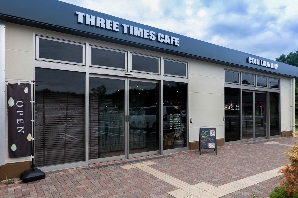 フォレストモール富士河口湖 内の「THREE TIMES CAFE」は、朝、昼、カフェタイムと3つの時間帯で違ったメニューが楽しめるコインランドリー併設カフェ。