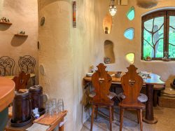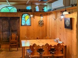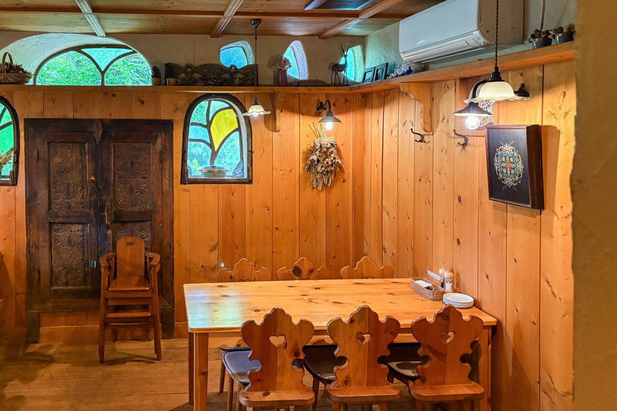 山中湖「森のアルム」は、可愛い外観から“優しくて不思議なおとぎの世界”が広がるお店。絵本に出てきそうな扉の向こうには、さらにメルヘンの世界が広がり、非日常空間を楽しめる。