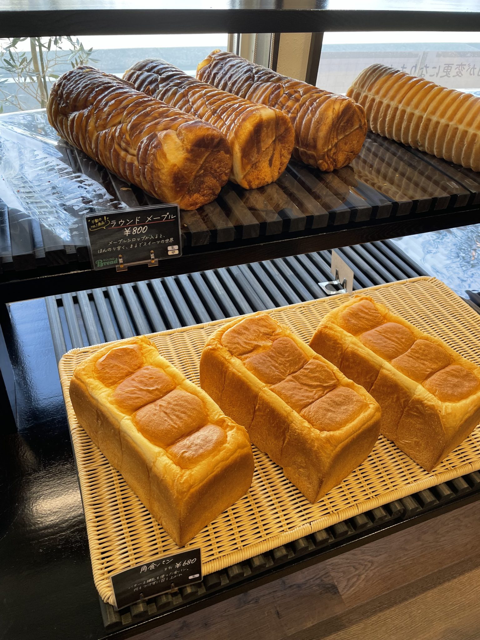 ・ラウンドメープル 800円 ・ラウンド チーズ 860円 ・ラウンド プレーン(ハーフ) 240円 ・バタール 300円 ・パン・ド・ロデブ(プレーン) 600円 ・ワインビーフカレーパン 300円 ・ベーコンエピ 260円 ・エビカツコッペ 380円 |