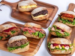 八ヶ岳産の牛乳と生クリームで作ったバターをたっぷり塗ったサンドは、山梨県産の食材を贅沢にイン。オール山梨のプレミアムサンド3種類に、エビアボカドや大豆ミートローフなど全8種類をラインナップする。