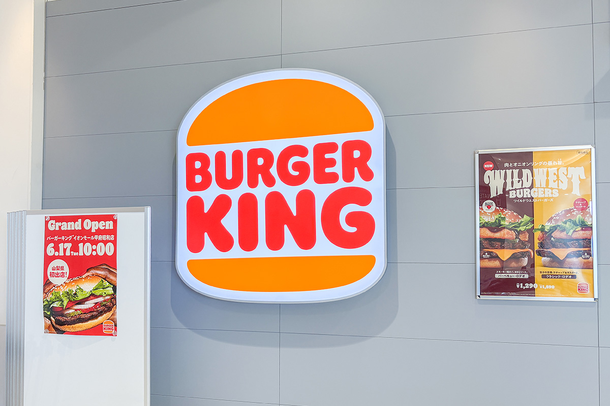 イオンモール甲府昭和店のフードコートに2025年6月、県内初オープンした「バーガーキング」。直火焼きの100%ビーフパティとフレッシュな野菜を使用したビッグサイズのハンバーガーが大人気のお店だ。