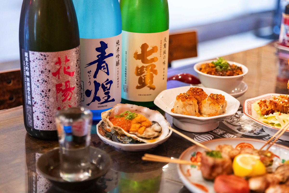 甲府市大里町の「巻串酒場 めらんべゑ」は、野菜巻串&創作中華と地酒のお店。昭和町にある「串天酒場 めらんべゑ」の2号店ということで、本店こだわりの上質な海鮮を使ったおつまみや一品料理も見逃せない。