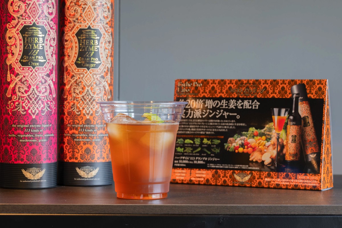 また、エステプロ・ラボの酵母・植物性乳酸菌で自然発酵させた「ハーブザイム」の酵素ドリンクやチャコールクレンズの真っ黒なラテも!