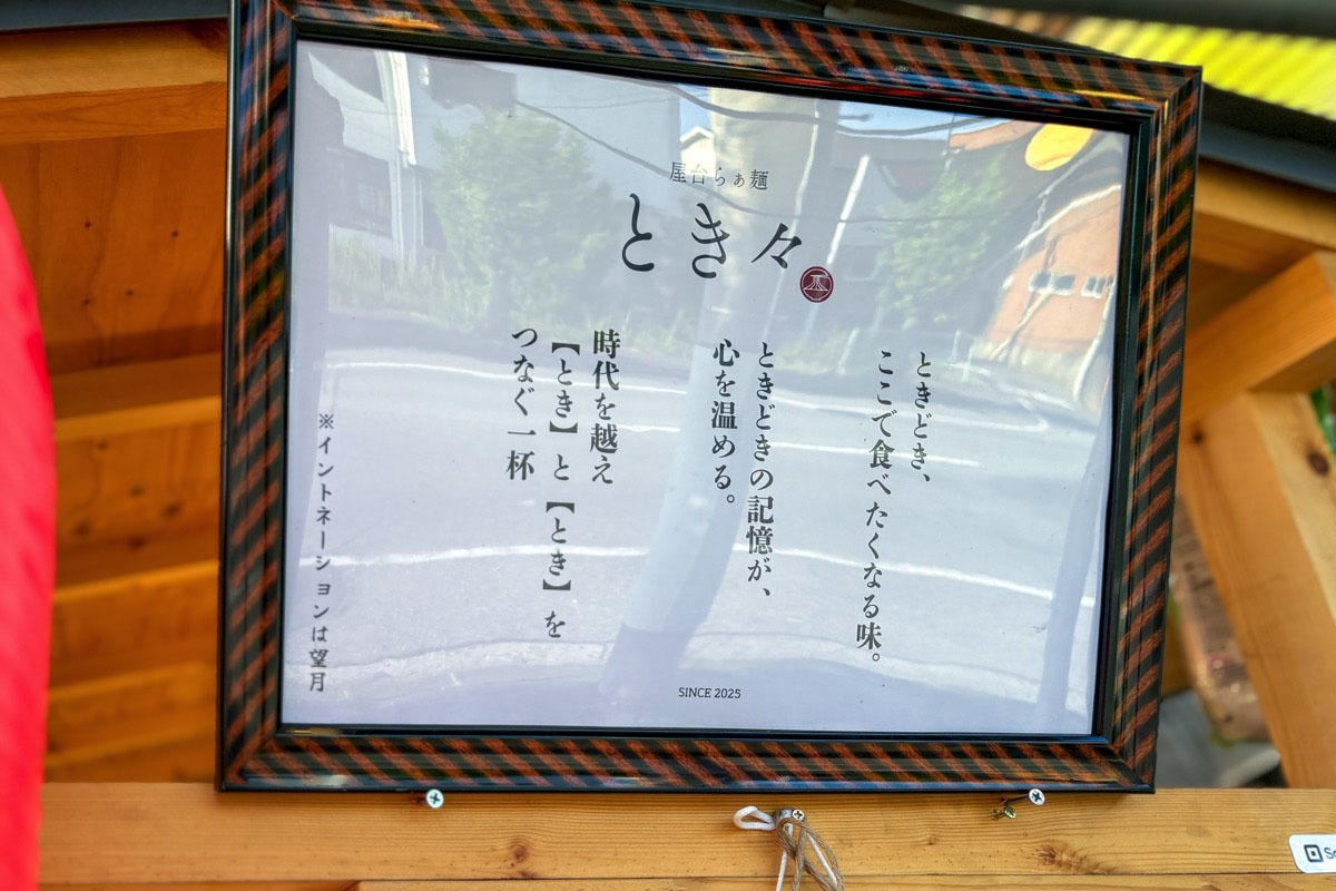 甲府市上阿原の「屋台らぁ麺 とき々」は、「まんまる」と「古酒家(クースヤ)」の間に出店する屋台ラーメン。どこか懐かしくて、だけど今っぽい“ときどき食べたくなる”一杯。