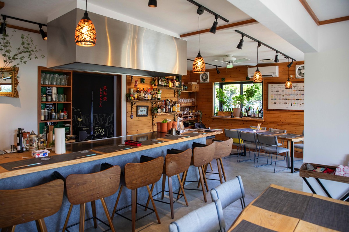 リゾナーレ小淵沢近くの「TEPPAN CUISINE 703 小淵沢リゾート店」は、東京、成城学園前にある「TEPPAN CUISINE 703」の2号店。週末と祝日のみ営業するおしゃれな鉄板焼き屋さんだ。