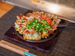 甲州ワインビーフや八ヶ岳の野菜など、山梨ならではの食材を贅沢に味わえるほか、海鮮や自慢のお好み焼きも。