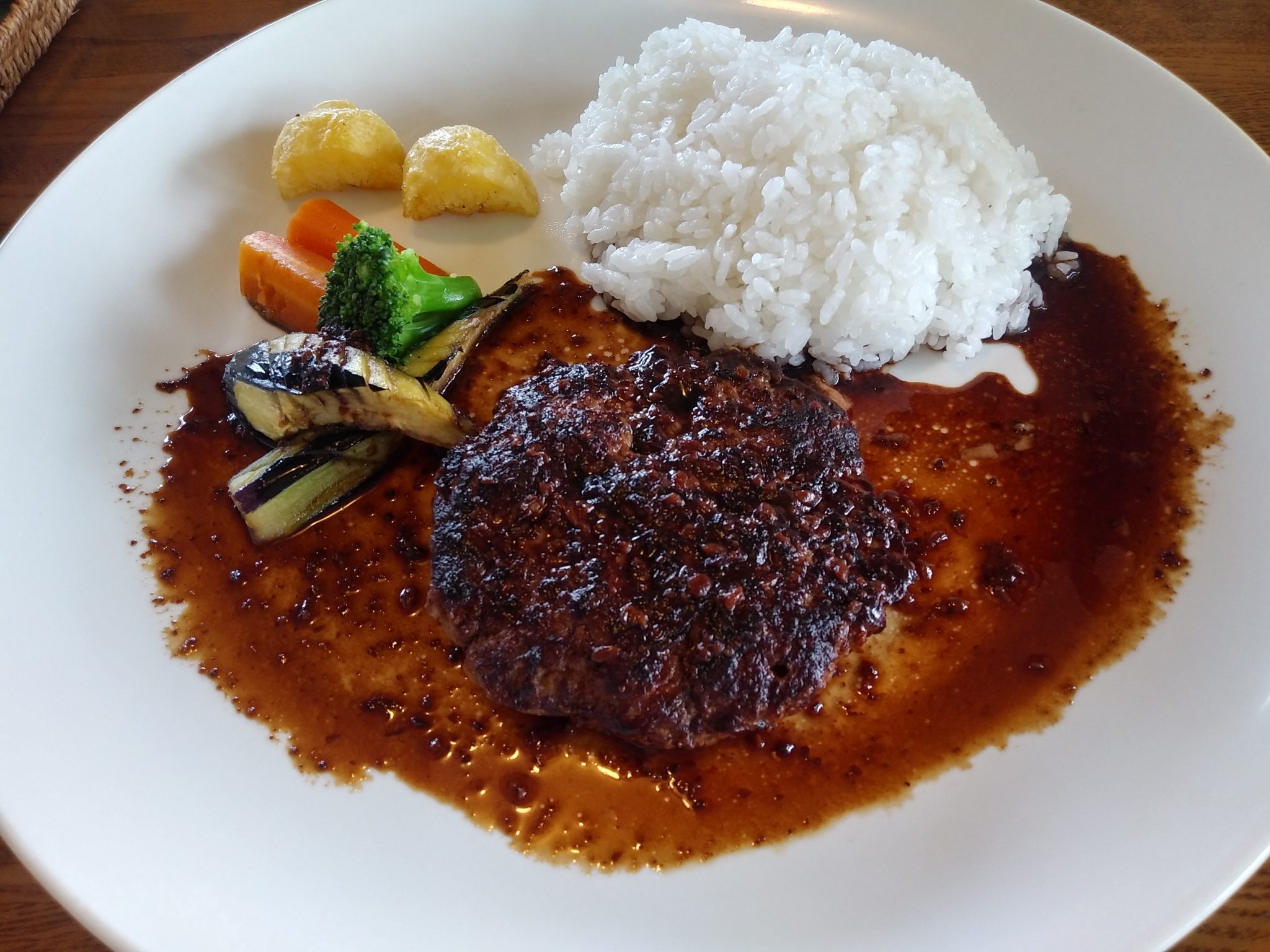 ハンバーグソースが、玉葱の効いた和風なソースで、いわゆるデミグラスソースの「THE洋食!」という感じのハンバーグではなかったです。
