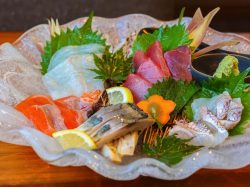 修業先で培った鮮魚のさばき方から調理法、仕入れルートにより、山梨オリジナルのブランド魚「富士の介」を始めとする刺身が美味しいと評判だ。