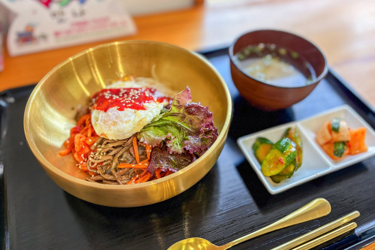 ・日替わりランチ 900円(ライスまたはおかず+300円、ライス&おかずセット+500円) ・チャプチェ 900円 ・ビビンバ 900円 ・トッポギ 800円 ・ヤンニョムチキン 800円(4個入り) ・海鮮チヂミ 800円 ・キンパ 900円 |