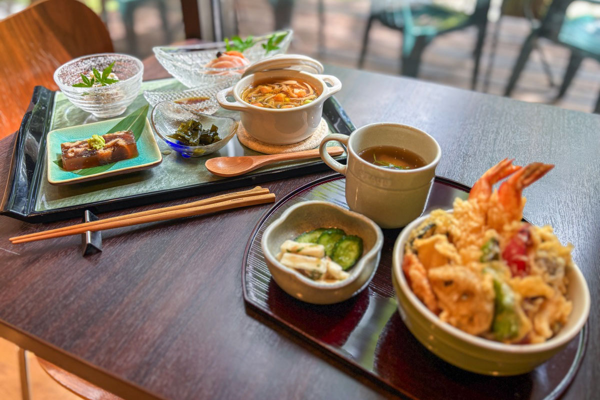 北杜市白州町の「天丼と旬菜 ぎんなん」は8時、11時、13時と各回2組限定の和食御膳が堪能できるお店。
