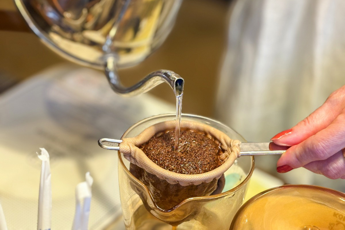 ネルドリップでゆっくりと淹れてくれるコーヒーを待ちながら、丁寧に時を重ねていく。