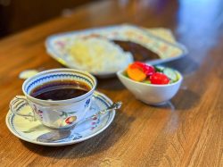 ・マイルドブレンド 600円 ・フレンチブレンド 600円 ・カフェオレ 700円 ・カレー(サラダ付き) 1,000円※コーヒーセット 1,500円 ・トースト(ジャム&マーマレード、サラダ付き) 600円※コーヒーセット1,100円 ・チーズトースト(ベーコン入り、サラダ付き) 800円※コーヒーセット1,300円 |