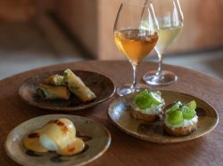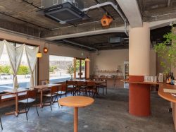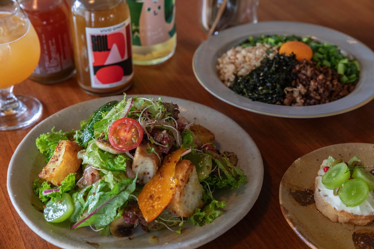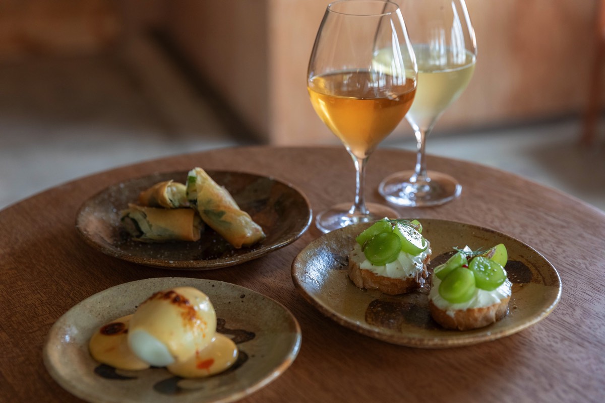 様々な文化や価値観が交わる“小さな港”がコンセプト。宿泊やギャラリーに先駆けオープンしたフェ&バーは、多様な文化を生む港にふさわしく、一つのジャンルにとらわれない多彩な料理が楽しめる。