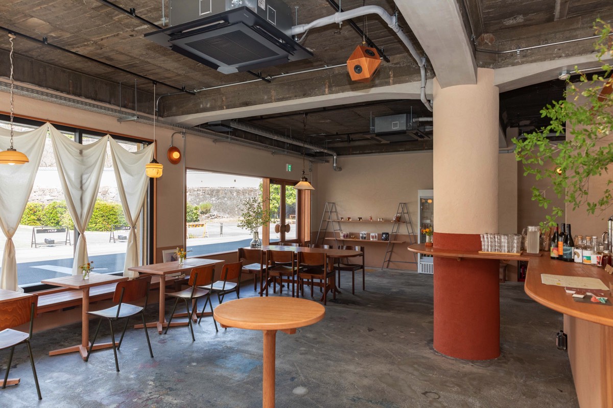 甲府市の舞鶴城公園近く「horn」は、宿泊・カフェ&バー・食料品物販・ギャラリーの複合的な機能を備える。