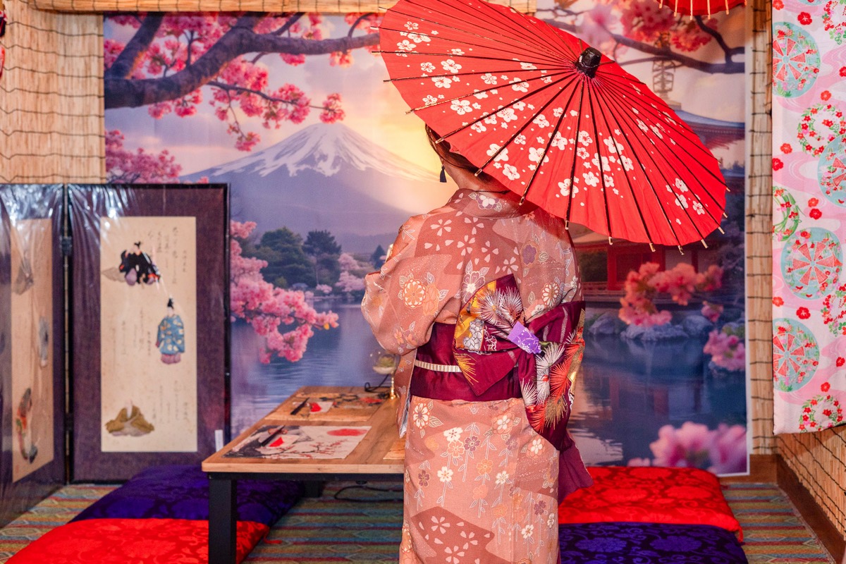 どこを切り取ってもSNS映えする店内で、わずか1分で着たとは思えない完成度を誇る艶姿を思い出の1ページに刻もう。
