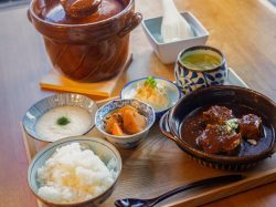 ・仙台 牛たん定食 6切2,300円、9切2,820円、12切3,400円、単品1,500円 ・極厚切り 仙台 牛たん定食 9切4,500円、単品3,200円 ・牛たんシチュー定食 2,620円、単品1,820円 ・牛たんハンバーグ定食 おろしポン酢2,480円、単品1,680円/デミグラスソース2,680円、単品1,820円 ※定食は土鍋ご飯(2人前1.5合、とろろ、テールスープ、山梨県産野菜、おばんざい小鉢2品付。おひとり様の場合は1人前1合提供、残りはおにぎりにしてお持ち帰り) |