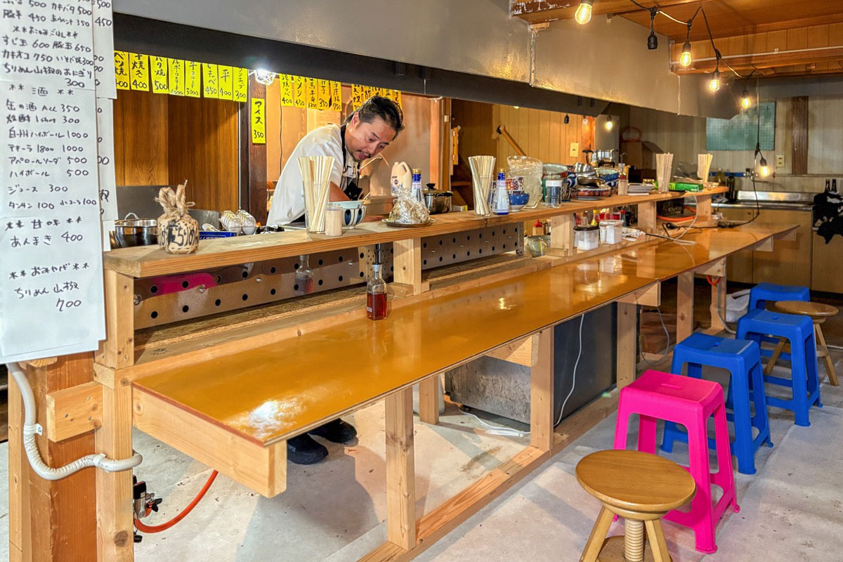 金・土曜日のみ営業し、鉄板焼きメインのリーズナブルなメニューを提供する。内容は日によって変わり、自家製辛味噌や和牛ホルモンを使ったり、オリジナルの「ちりめん山椒」おにぎりが並んだりと、ここだけの料理がたっぷり楽しめちゃう♪
