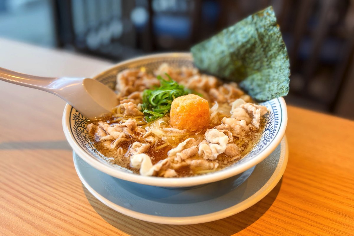丸源ラーメンといえば、希少部位を使用したとろけるような薄切り豚肉がふんだんに入った「熟成醤油ラーメン 肉そば」!