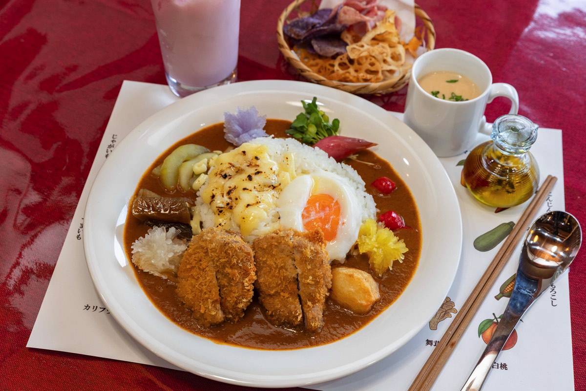 主なメニュー ・河口湖カレーランチセット 1,600円(自家製ピクルス・季節のスープ・野菜チップス・自家製赤紫蘇ジュース付)