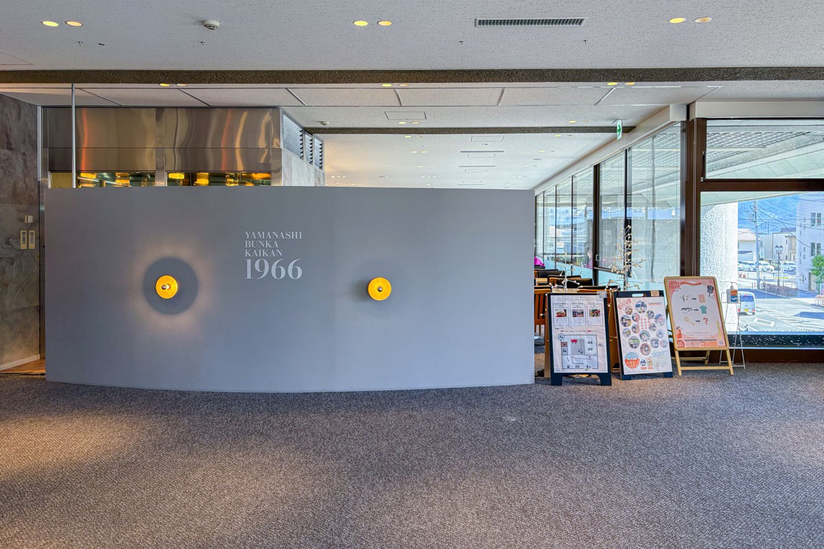 YAMANASHI BUNKA KAIKAN 1966店甲府駅北口の山日YBSグループ本社2階では、熱風式自家焙煎専門「岩田屋珈琲」が常駐するドリンクスタン... -