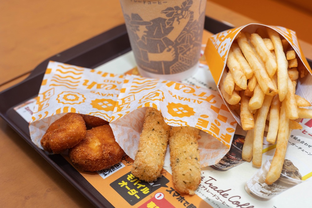 看板の絶品バーガーのほか、フェアトレードコーヒーやチーズスティック、チキンからあげっとなど、オリジナルのサイドメニューも◎!