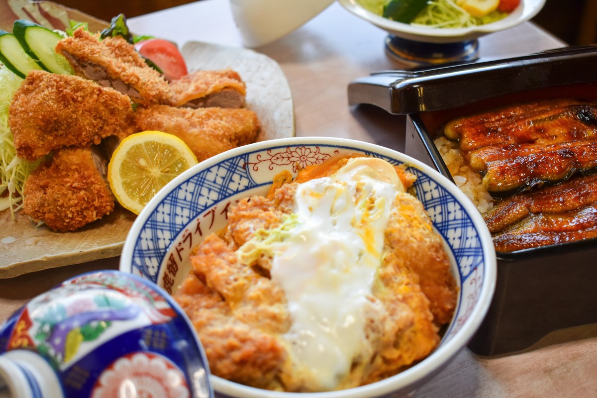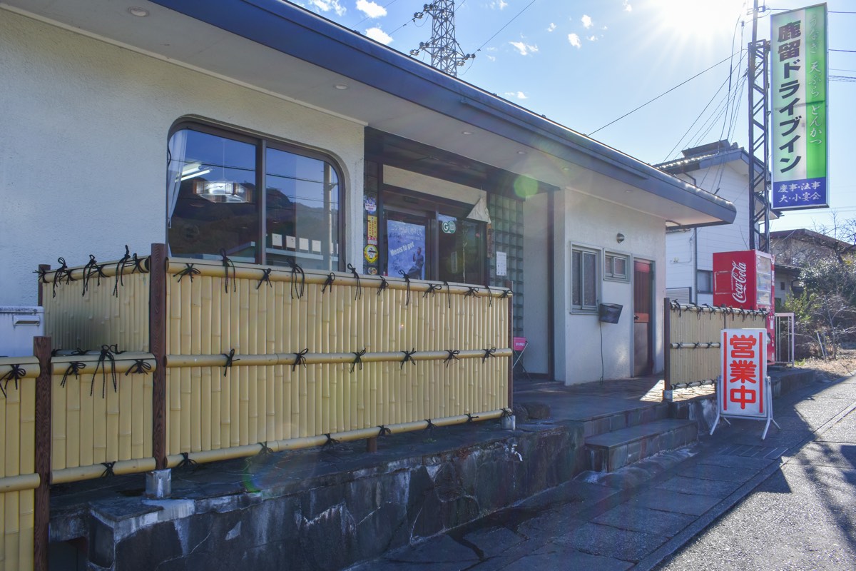創業約60年、国道139号沿いにある「鹿留ドライブイン」。定食や丼ものからサンドウィッチなどの軽食まで種類豊富なお食事メニュ-を楽しむことができる。