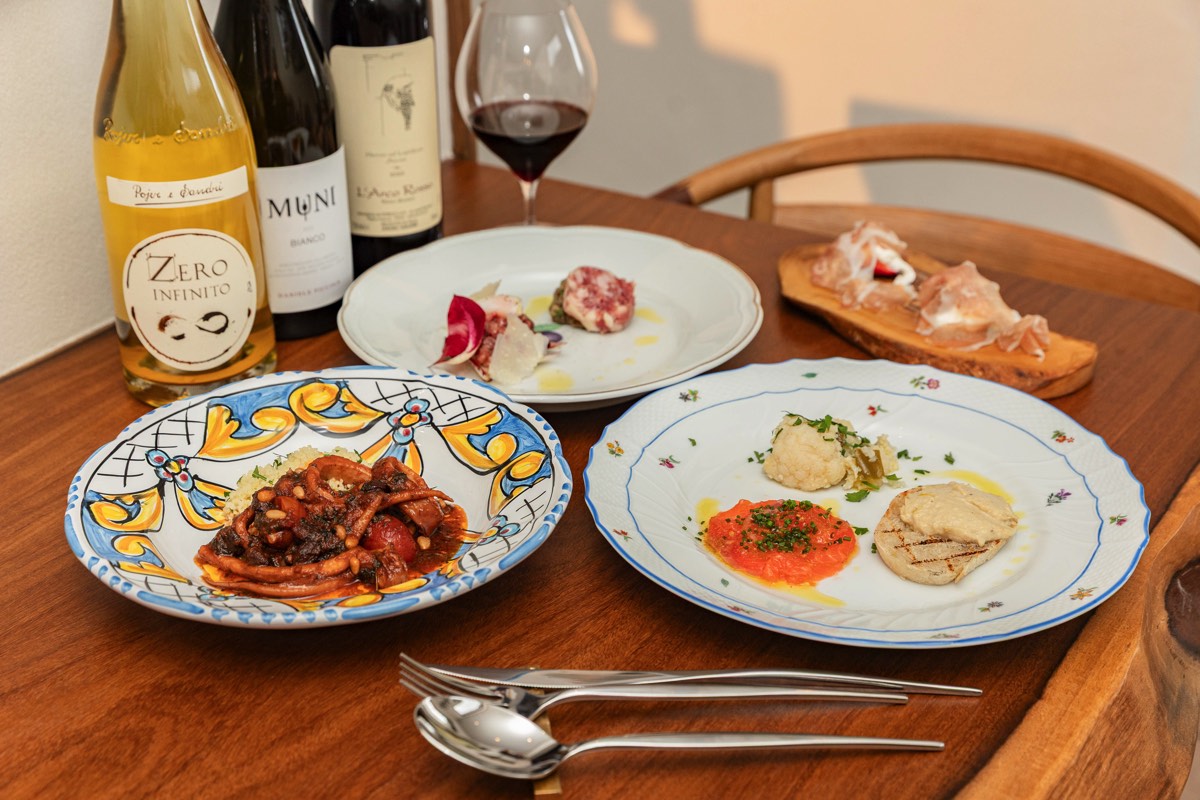 カウンター席をメインに、6人掛けのテーブル1つのセンス溢れる空間で、ナチュラルワインを中心にイタリアの豊かな食文化を満喫しよう。予約が望ましいが、当日でも行く前に電話を入れてみて。