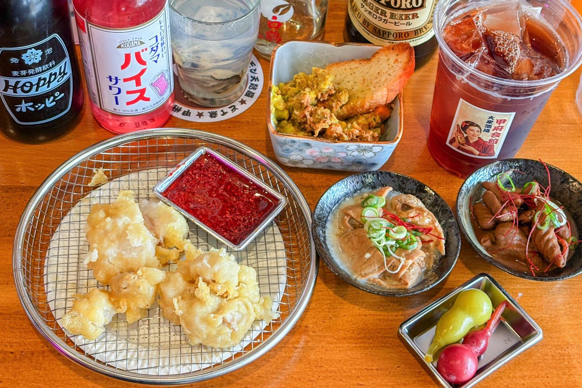 もつやホルモン、おばんざい、揚物など豊富なメニューが数百円から揃い、レトロな雰囲気の中で安く気軽に飲めるのがウリ。