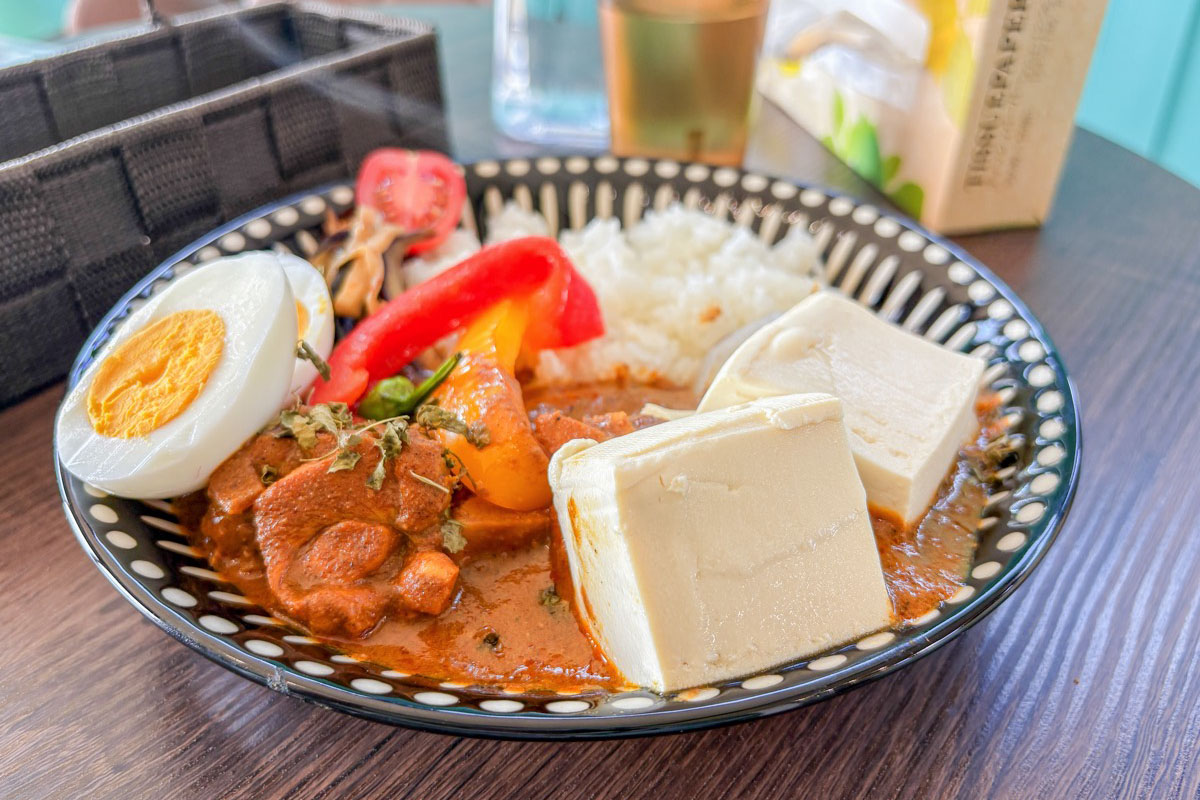 あったかい木綿豆腐をドーンとのせるもよし、黒富士農場の美味しいゆで卵をトッピングするもよし。「山の焙煎所」のスペシャルティコーヒーやオリジナルクラフトコーラ、ラッシーなどとぜひ。