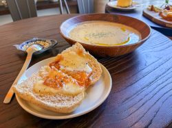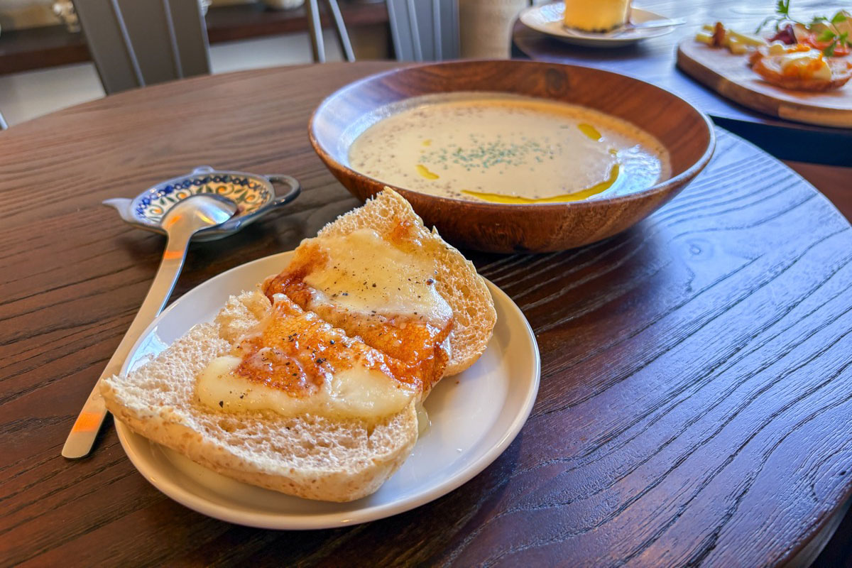 ワインセラーには、なかなか見る機会のない製造中のチーズも!週末のみ季節のスープとチーズパンのランチがメニューに加わるのでぜひ。