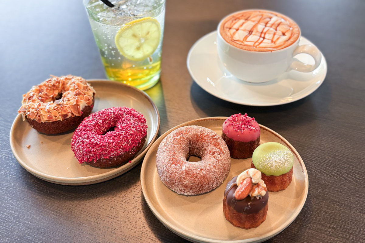 外はカリッ、中はもちもちした食感の「ザクもちドーナツ」は、見た目の可愛さに加え、味も最高。自家製カヌレやドリンクも種類豊富で、イートイン限定メニューも見逃せない。