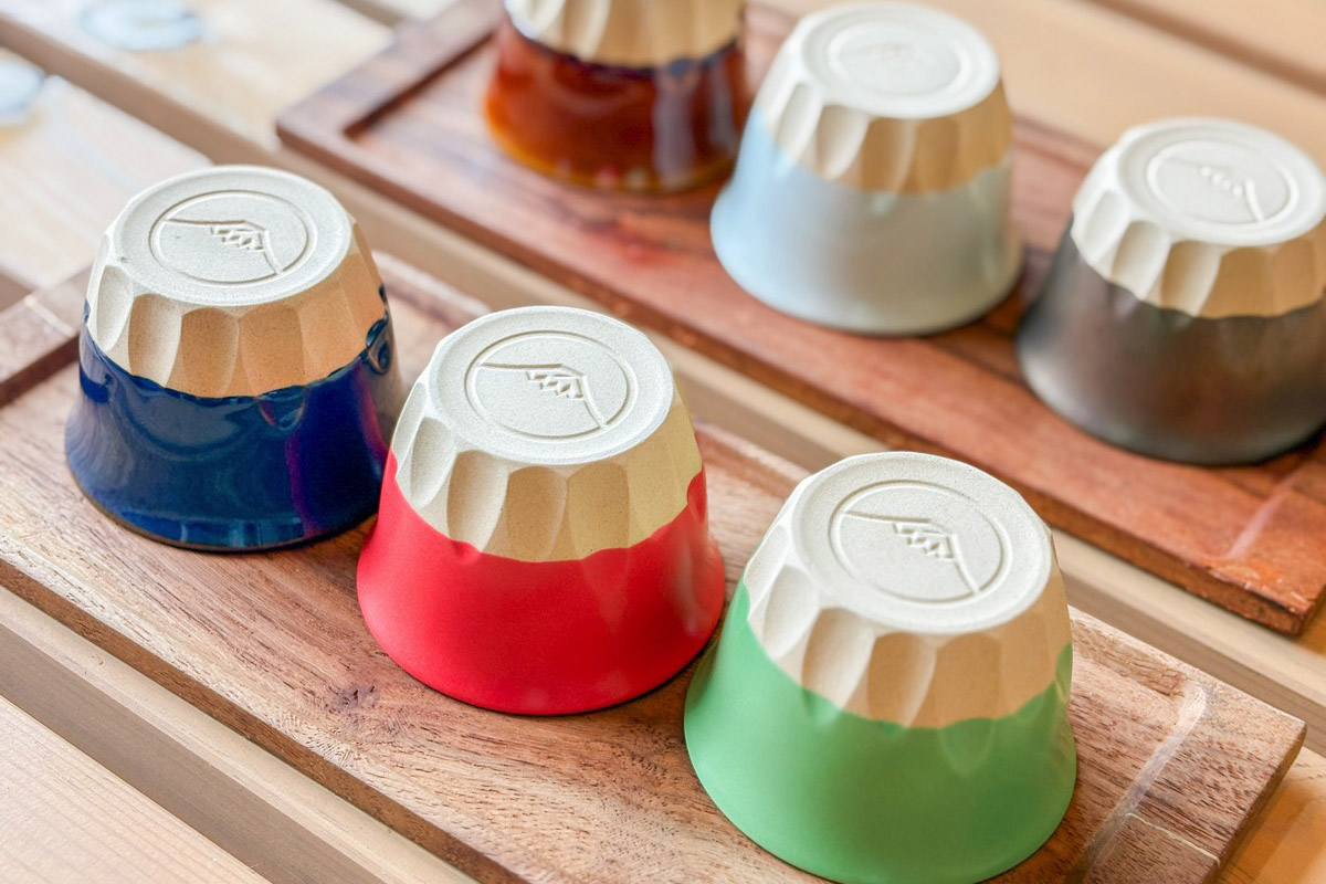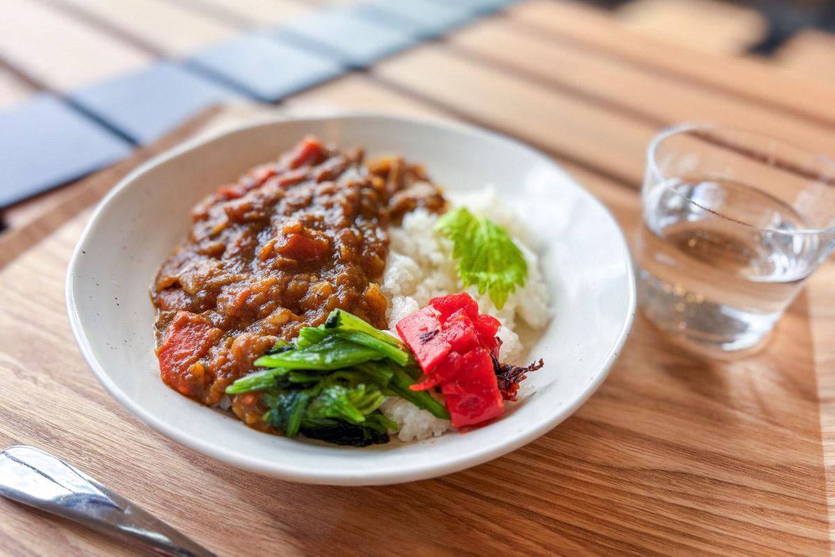 洗練されたくつろぎの和空間で、益子焼の富士山茶碗で供される茶碗蒸しや出汁香るカレー、おにぎりなどが楽しめる。