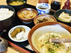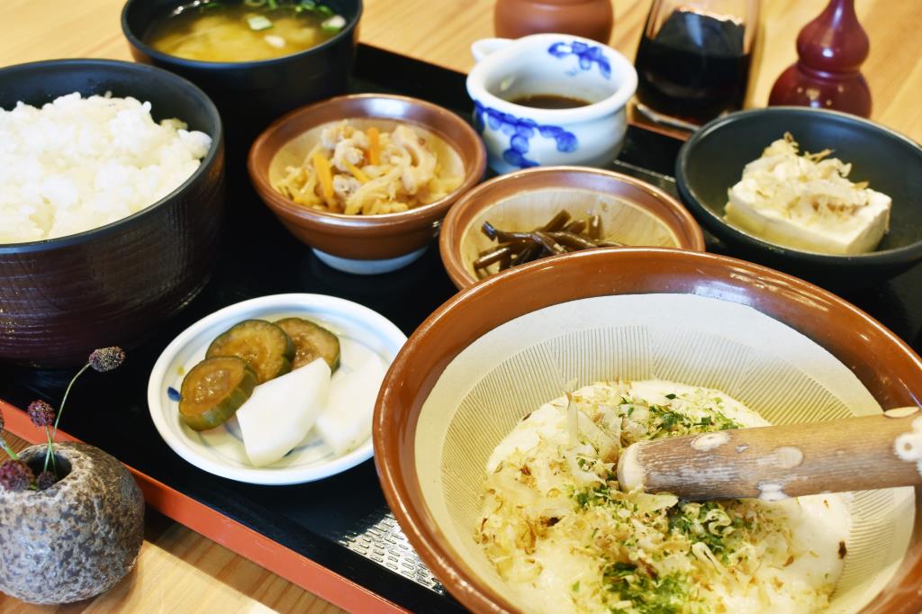 自家製の米・山芋を使用し、地産地消にこだわった定食をいただける「味処まんぷく」。