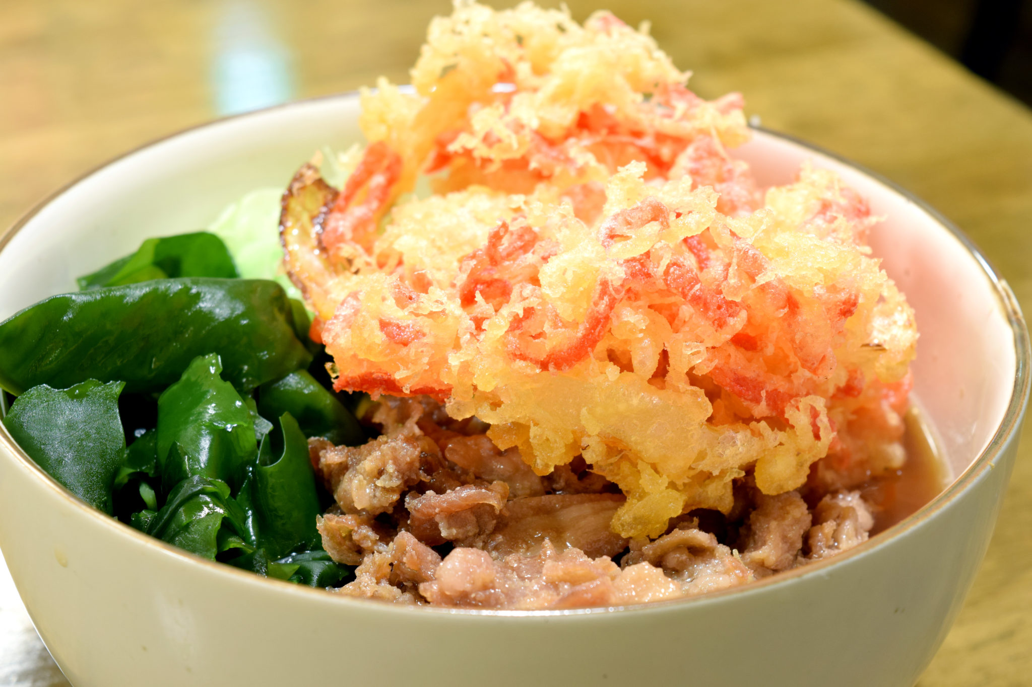 昼も夜も、昭和町で吉田のうどんが食べられます。もちもち食感のうどんに、甘辛い豚バラ肉がとっても美味しいです。かき揚げは玉...