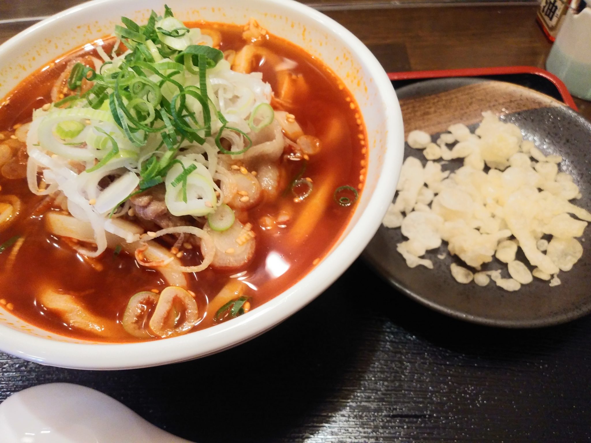 今回注文したうどんのメニュー名を忘れてしまったのですが、確か辛うどんだったと思います^^;