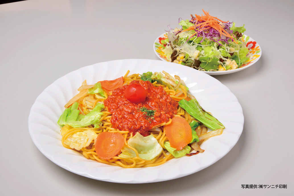 なかでも中央市のご当地B級グルメである青春のトマト焼きそばが人気で、新鮮野菜がたっぷり!