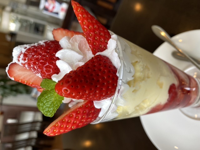 イチゴパフェは、大きくてめちゃ美味しいです、