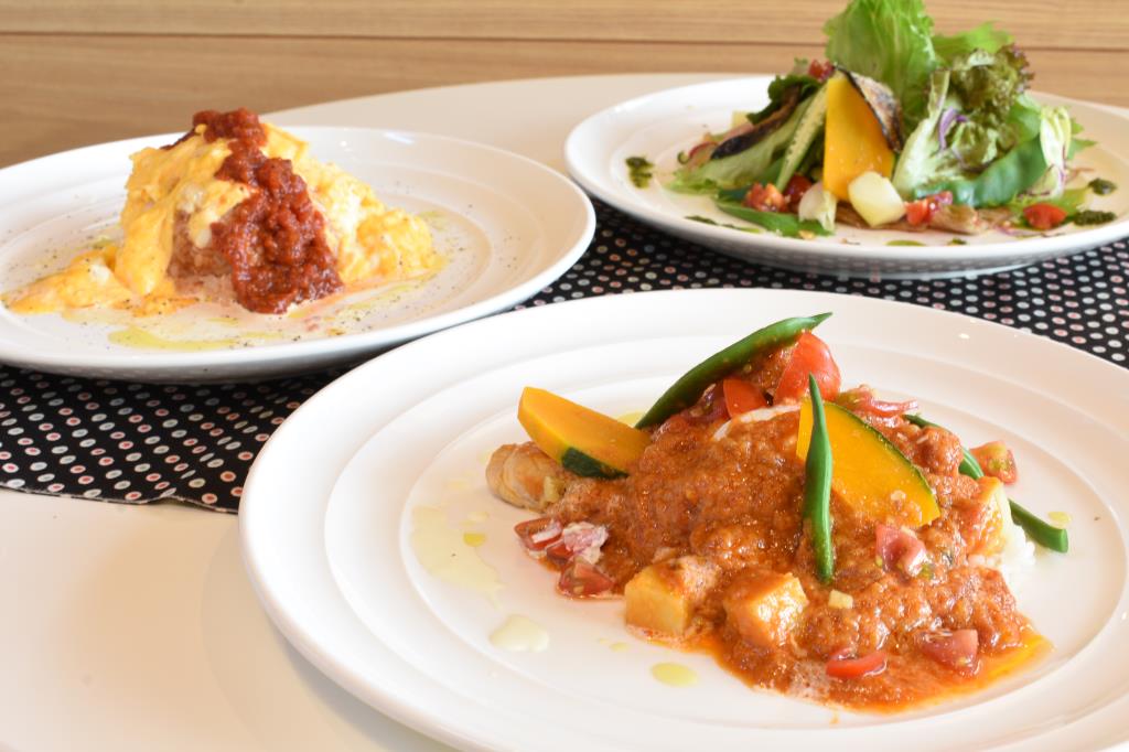 ・ガレットのサラダ仕立て 1,300~1,700円 ・大人のオムライス 1,700円 ・カレーライス 1,700円 ・パスタ各種 1,700円 ※上記ランチコース価格(前菜・スープ・サラダ・ドリンク付き) |