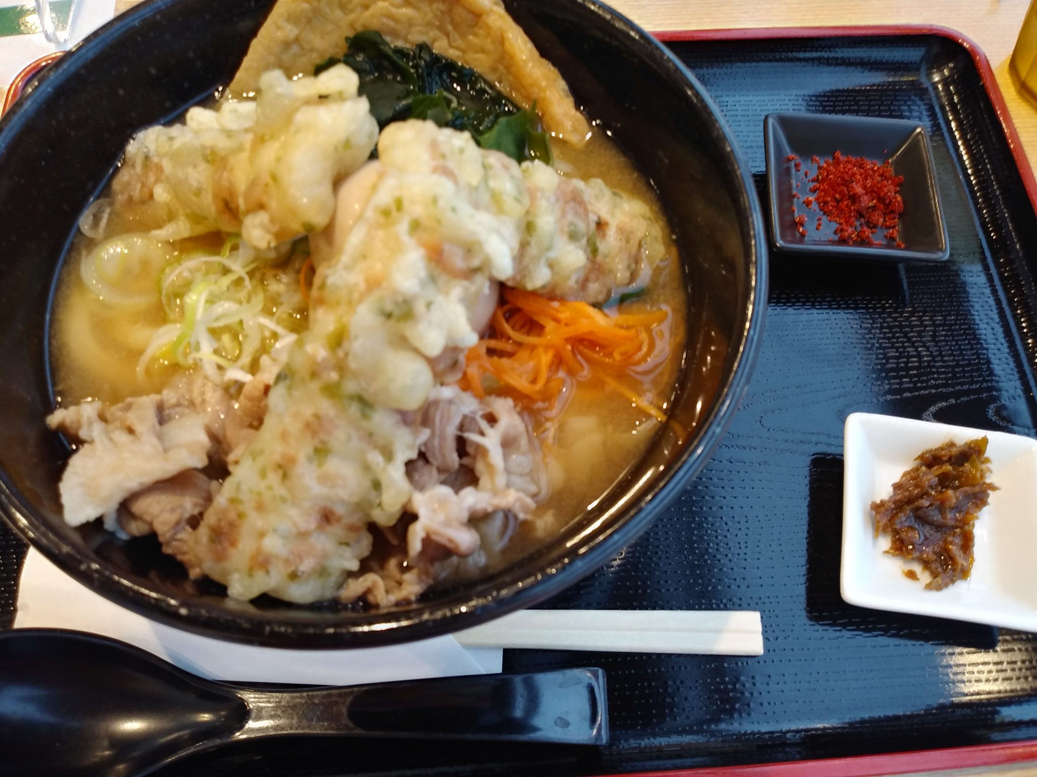 味噌のおしるとごわごわうどん麺が最高です。甲府の駅すぐに吉田のうどんが食べられて最高!県外から来てくれた友達も気に入ったようで、麺のおかわりをしていました。