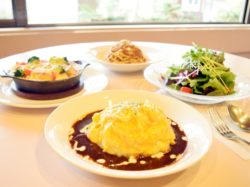 オムライス(小海老トマトキノコバターソース) オムライス(高原野菜をタップリ使ったモッツアレラカポナータ) |