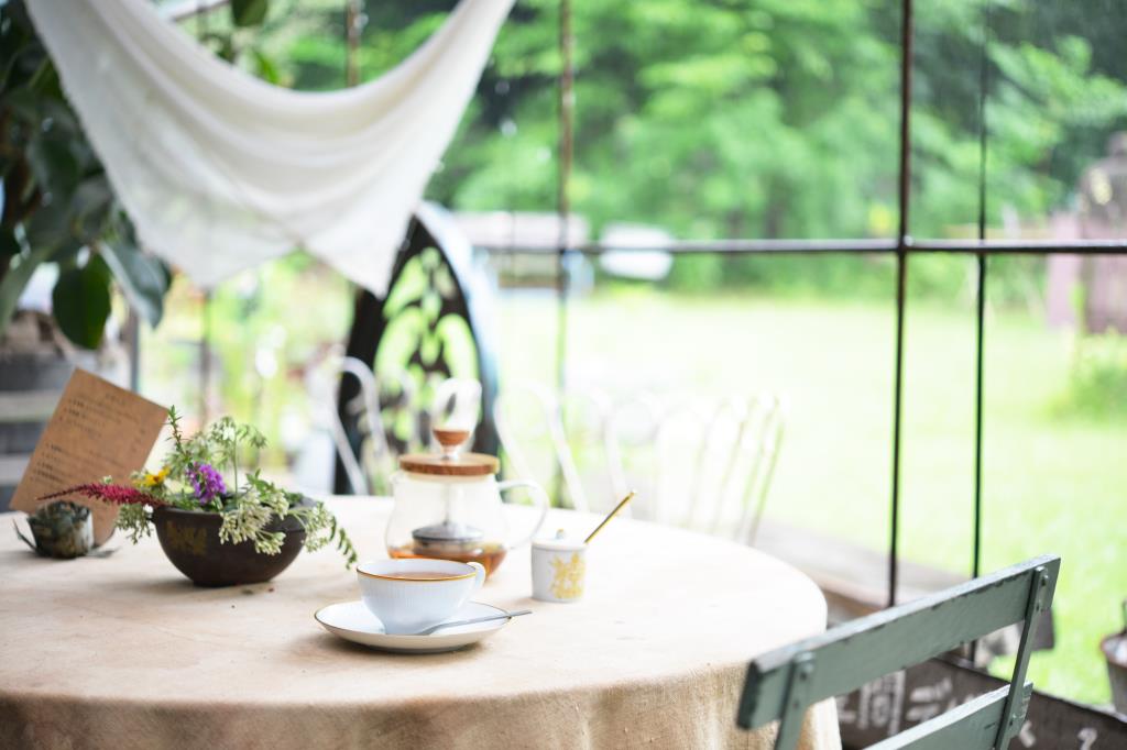森の中を抜けた先にガーデン、アンティーク、お料理を楽しめる空間が広がる。