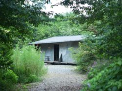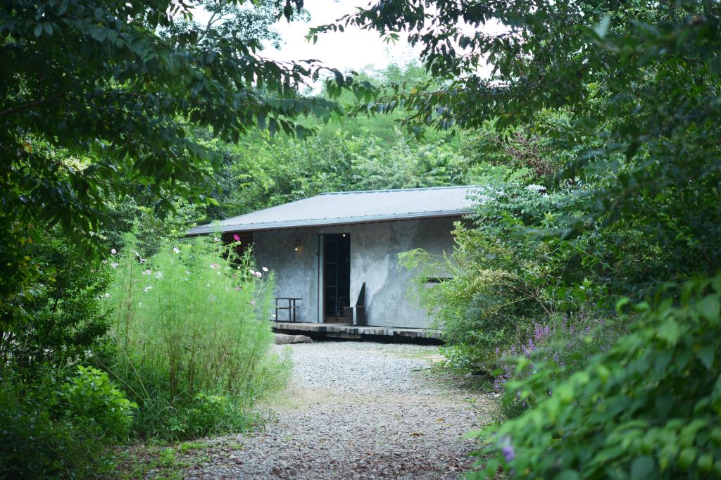 オーナー自ら森を開墾し丁寧に管理する店舗全体は、空間デザインの入り口にもなっている。