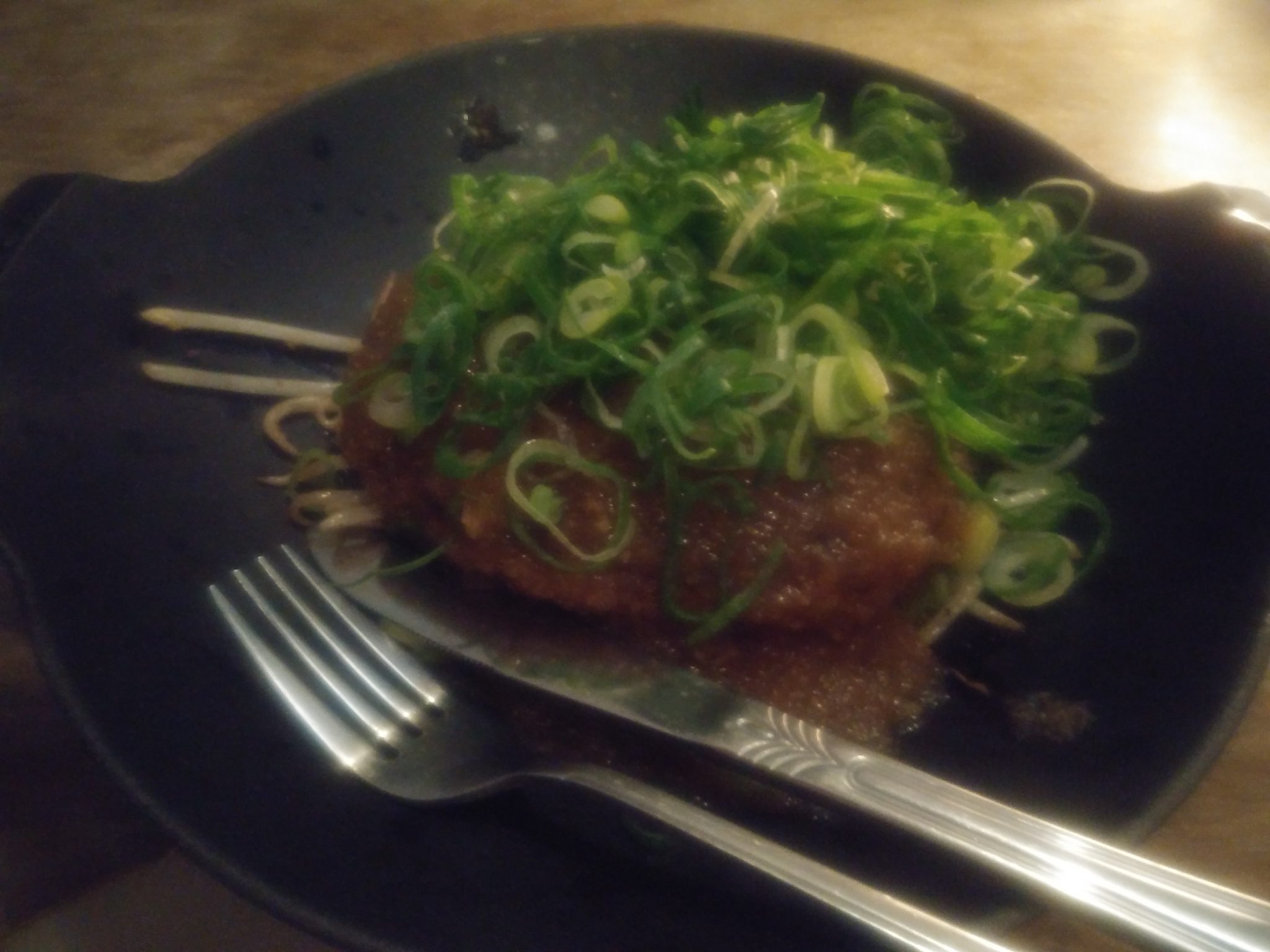 出来立てのレアハンバーグは、湯気が凄くてピンぼけのような写真になっていますが、とっても美味しいハンバーグでした。葱がたっぷりトッピングされていて、和風な味でした。ガーリックライスも頂き、とても美味しい料理で満足しました。スタッフさんは感じ良く、店内は賑わいがありました。