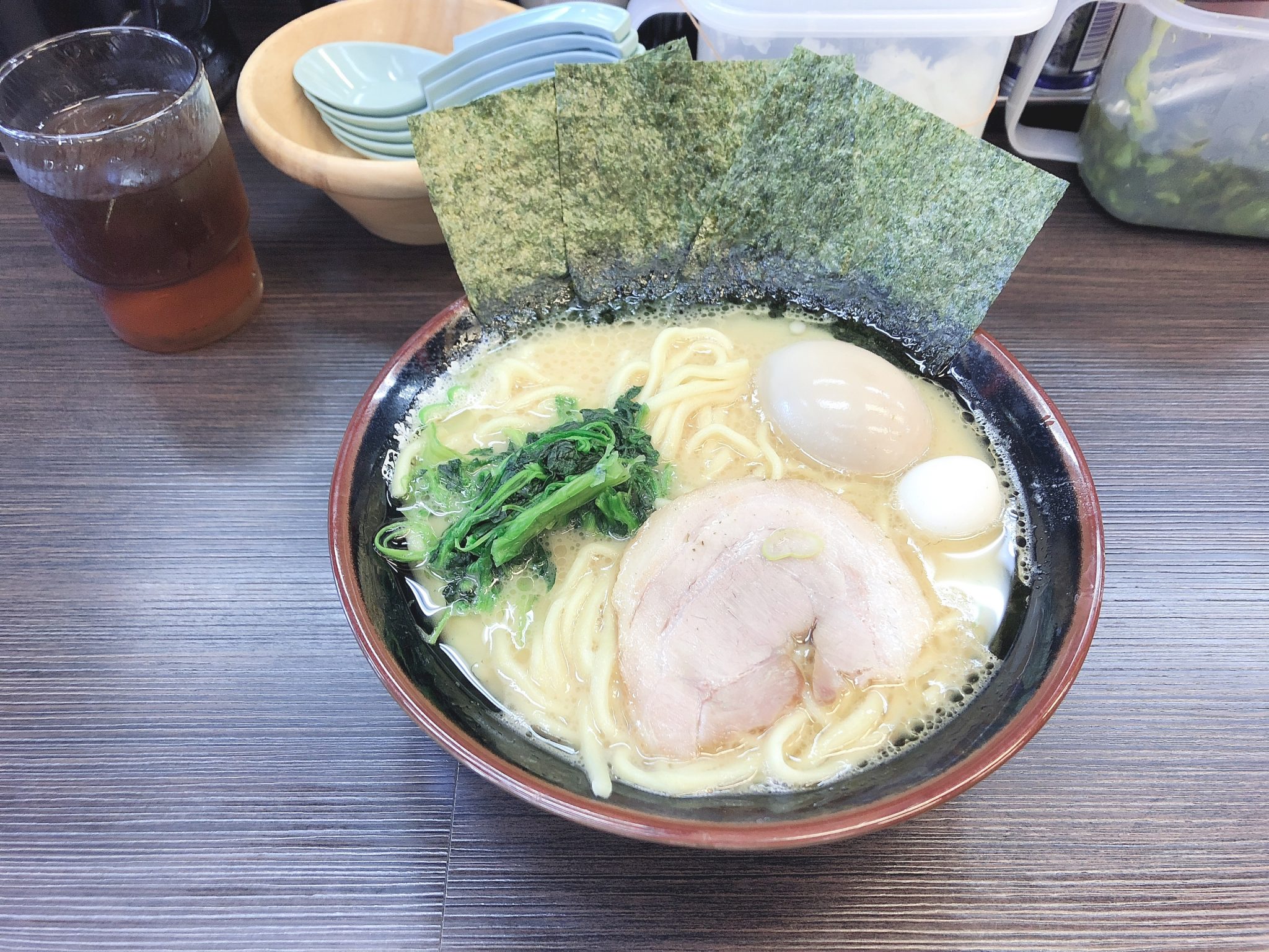 大好きな家系ラーメンです。とても活気のあるお店で、土日の昼時はいつも混んでいます。