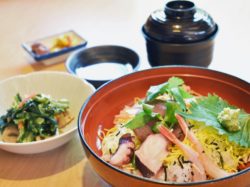 ・会席コース 2,500円~ ・特大海老と野菜の天丼 850円(小鉢・汁物・漬物) ・海鮮五目ちらし寿司 850円(小鉢・汁物・漬物) |