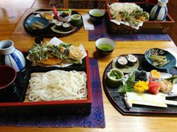・ざるそば 1,000円 ・田舎そば 1,000円 ・釜揚げ田舎そば 1,100円 ・八ヶ岳セット 2,000円(ざるそば・焼きみそ・生ゆば・甘味) |