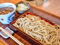 つるりと喉越しよく、香りい高い細めのざるそばと、甘皮が多く味わい深い太めの田舎そばのほか、蕎麦から自身で育て刈り取り、製粉・製麺した自家栽培の十割蕎麦が登場することも!