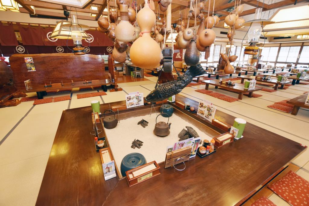 小作はなんと言ってもほうとうの種類が豊富!古民家風の開放感ある店内は、座敷や掘りごたつ式のテーブルも完備。