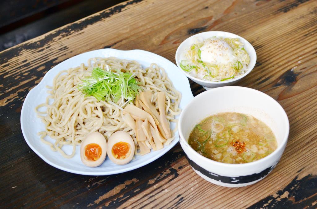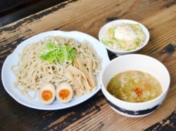 長く続いているつけ麺店で灰色の太麺が特徴です。小ライスの味を選べるのは、女子にも有り難いですね。